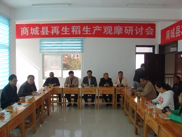 在隨后召開(kāi)的技術(shù)研討會(huì )上,與會(huì )的商城縣各鄉鎮種植大戶(hù)、糧食企業(yè)代表也在會(huì )上就發(fā)展再生稻生產(chǎn)談了自己的意見(jiàn)和看法,大家認為,再生稻生產(chǎn)輕簡(jiǎn)高效,安全環(huán)保,技術(shù)上易于撐握,符合農村經(jīng)濟發(fā)展的現實(shí)需求,紛紛表示對發(fā)展再生稻生產(chǎn)充滿(mǎn)了信心。隨后,劉祥臣副院長(cháng)結合商城實(shí)際,作了有關(guān)再生稻研究與應用的學(xué)術(shù)報告,對該縣發(fā)展再生稻的可行性、安全性、關(guān)鍵技術(shù)及重要意義作了全面系統的闡述。朱衛東局長(cháng)在研討會(huì )上作總結發(fā)言時(shí)表示,商城縣再生稻的生產(chǎn)得到了市農科院的大力支持,受到了縣委縣政府的高度重視,商城縣今年是第一年開(kāi)始種植再生稻,面積已達3000畝以上,二茬的產(chǎn)量已突破了300斤,可說(shuō)已初獲成功,大家要相信科學(xué),樹(shù)立信心,堅定不移地發(fā)展再生稻生產(chǎn)。要力爭用3年左右的時(shí)間,使全縣的再生稻種植面積實(shí)現大的擴展,產(chǎn)量實(shí)現大的提升,農民收入實(shí)現大的提高。