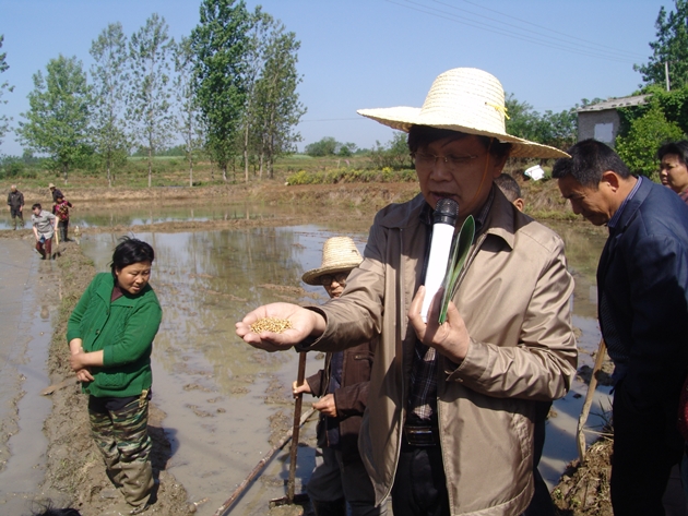 宋世枝研究員強調,“泥質(zhì)法”育秧是水稻拋秧技術(shù)的核心技術(shù),是對原育秧方法的重大改進(jìn),也是我市自主創(chuàng )新的國家發(fā)明專(zhuān)利技術(shù)。該技術(shù)的研發(fā)使拋秧技術(shù)重新煥發(fā)生機,標志著(zhù)我國拋秧技術(shù)進(jìn)入一個(gè)新的發(fā)展時(shí)期。隨著(zhù)農村勞動(dòng)力的快速轉移,農業(yè)勞動(dòng)力減少,水稻插秧已經(jīng)成為水稻生產(chǎn)必須解決的首要問(wèn)題。而“泥質(zhì)法”育、拋秧秧技術(shù)操作簡(jiǎn)便,省時(shí)省力、安全增產(chǎn),每畝節約用工成本150元,增產(chǎn)5-8%,每畝增收節支超過(guò)200元,農民一看就會(huì ),一作就成,非常適合小規模土地流轉和傳統家庭水稻種植戶(hù)以及生產(chǎn)條件差的山區丘陵稻區應用,在信陽(yáng)有廣闊應用前景,近幾年信陽(yáng)拋秧面積以幾何級數增長(cháng),應用面積已經(jīng)超過(guò)100萬(wàn)畝,部分鄉鎮達到95%。他認為,“泥質(zhì)法”育、拋秧技術(shù)不僅使“秈改粳”惠民項目得到順利實(shí)施,農民實(shí)現增產(chǎn)增收,也將使該村農民從臉朝黃土背朝天的繁重勞動(dòng)中解放出來(lái),從此告別手工插秧的歷史。
