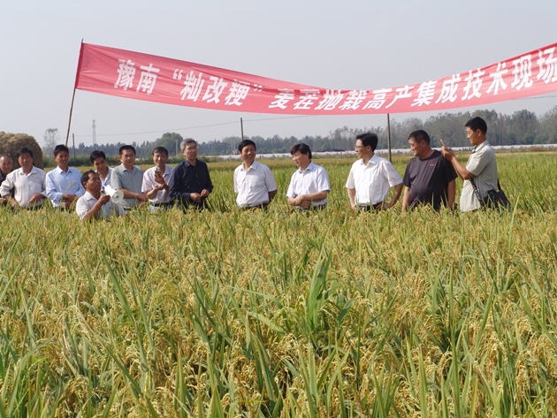 豫南“秈改粳”麥茬拋栽高產(chǎn)集成技術(shù)現場(chǎng)觀(guān)摩暨研討會(huì )召開(kāi)