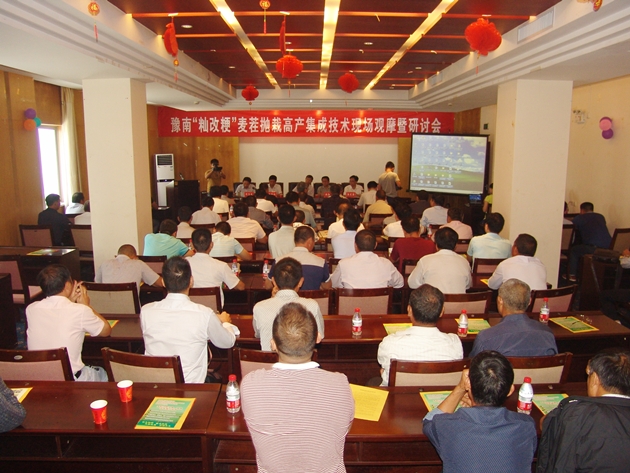 9月20日,豫南“秈改粳”麥茬拋栽高產(chǎn)集成技術(shù)現場(chǎng)觀(guān)摩暨研討會(huì )在息縣召開(kāi),來(lái)自信陽(yáng)、南陽(yáng)及駐馬店部分農業(yè)科研、教學(xué)、推廣單位領(lǐng)導及技術(shù)人員和種田大戶(hù)代表110余人參加了會(huì )議。駐馬店市農業(yè)科學(xué)院院長(cháng)孟祥鋒、河南省科技廳農村中心副主任潘曉東、信陽(yáng)市科技局副局長(cháng)汪金柱、信陽(yáng)師范學(xué)院生命科學(xué)院副院長(cháng)張蘇鋒出席會(huì )議,息縣人民政府副縣長(cháng)洪有強致歡迎詞,院黨委書(shū)記韓勛來(lái)作總結講話(huà),副院長(cháng)祁玉良主持會(huì )議。