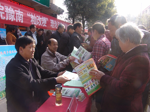 活動(dòng)現場(chǎng),人頭攢動(dòng),熱鬧非凡,附近鄉村的農民群眾聞?dòng)嵑蠹娂娗皝?lái),將咨詢(xún)現場(chǎng)圍的水泄不通。我院家們通過(guò)設置咨詢(xún)臺、發(fā)放科普資料、贈送書(shū)籍等形式現場(chǎng)發(fā)放“水稻兩段栽培技術(shù)的原理和方法”“水稻泥質(zhì)法育、拋秧技術(shù)”“豫南‘秈改粳'核心技術(shù)”“豫南粳稻主要病蟲(chóng)害的發(fā)生與防治”等豫南“秈改粳”理論與技術(shù)推廣資料2000余份,并現場(chǎng)回答了農民群眾提出的各種問(wèn)題。