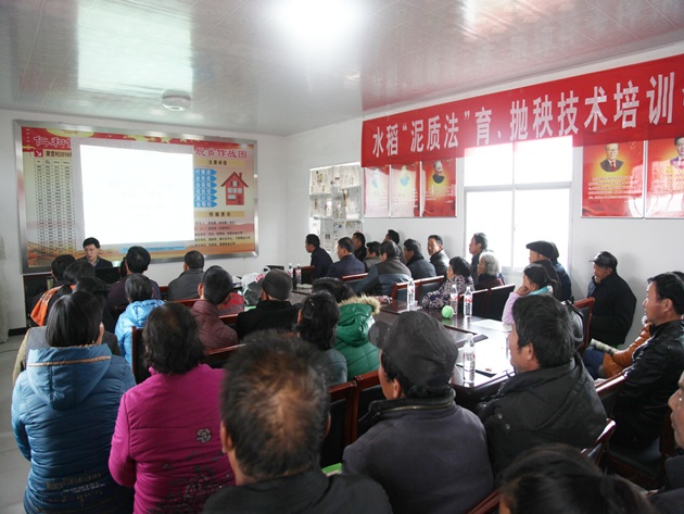 這是我院在該鎮舉辦的泥質(zhì)法育拋技術(shù)培訓會(huì )上出現的一幕。泥質(zhì)法育拋技術(shù)發(fā)明人、我院宋世枝研究員系統闡述了泥質(zhì)法育秧技術(shù)的研發(fā)背景、基本原理、技術(shù)路線(xiàn)、技術(shù)要點(diǎn)、操作規程、應用前景和重要意義。前來(lái)參加培訓的除正陽(yáng)縣外,還有來(lái)自確山縣等地的種田大戶(hù)近100人。這是繼3月21日確山縣留莊鎮之后,我院在駐馬店召開(kāi)的第二場(chǎng)泥質(zhì)法育拋秧技術(shù)培訓會(huì )。