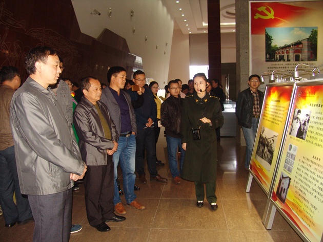 在紀念館,黨員干部駐足在一幅幅老圖片、一件件老文物前,認真聆聽(tīng)解說(shuō)員對紀念館“千里躍進(jìn) 將軍故鄉” “紅色蘇區 共鑄輝煌” “紅色土地 艱苦卓絕” “中原突圍 鐵流千里” “千里躍進(jìn) 偉大壯舉”等七個(gè)部分的現場(chǎng)講解。