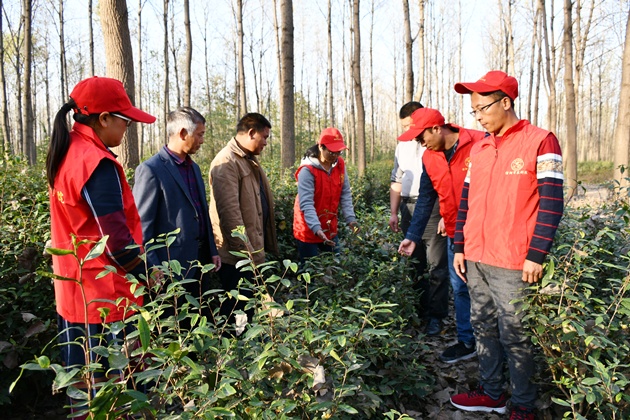 結束了在羅山縣的行程,志愿者們走進(jìn)潢川縣魏崗鄉辛店村,聞?dòng)嵍鴣?lái)的村民們跳起了歡快的廣場(chǎng)舞迎接服務(wù)隊的到來(lái)。駐該村第一團支部書(shū)記申關(guān)望根據當地農業(yè)生產(chǎn)實(shí)際,為村民們精心準備了農業(yè)知識展板、技術(shù)資料和蔬菜種子,志愿者們熱情地向村民們宣講最新的農業(yè)科技和生產(chǎn)模式,細致地解答他們生產(chǎn)當中遇到的各種難題。同行的茶葉專(zhuān)家蔣雙豐對秋冬季和春季茶園的耕作、施肥、修剪等方面的田間栽培管理措施以及可能出現的寒害、凍害的危害狀及預防措施等等內容進(jìn)行了培訓;小麥專(zhuān)家陳真真重點(diǎn)介紹了適宜當地播種的弱筋小麥品種及麥田雜草防治技術(shù)。志愿者們還來(lái)到潢川縣張集鄉霸王臺村,駐該村第一團支部書(shū)記徐士庫和志愿者們與村支兩委負責同志舉行座談,共同探討精準扶貧精準脫貧措施,表明了堅決打贏(yíng)脫貧攻堅戰的堅定信念和決心。