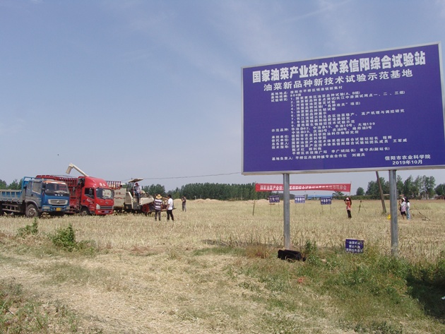 5月22日上午,平橋區明港鎮新集村兵建種植專(zhuān)業(yè)合作社油菜種植基地內,機聲隆隆,人聲鼎沸,由國家油菜產(chǎn)業(yè)技術(shù)體系信陽(yáng)綜合試驗站舉辦的油菜機收現場(chǎng)觀(guān)摩會(huì )正在這里舉行。