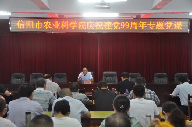 為慶祝中國共產(chǎn)黨成立99周年,深入學(xué)習貫徹習近平總書(shū)記視察河南深入信陽(yáng)革命老區重要講話(huà)精神,7月2日,一場(chǎng)入情入理的“傳承紅色基因,助力老區振興”七一專(zhuān)題教育在院辦公樓四樓會(huì )議室開(kāi)講。當天上午,院黨委書(shū)記李杰以《以無(wú)我之境涵養情懷,以有為之功砥礪前行》為題,為院黨委領(lǐng)導班子成員、院屬各支部負責同志、副科級以上中層干部、中級職稱(chēng)以上專(zhuān)業(yè)技術(shù)人員共80余人講授了一堂催人奮進(jìn)的紅色黨課,傳遞農科好聲音,為黨慶生獻禮。