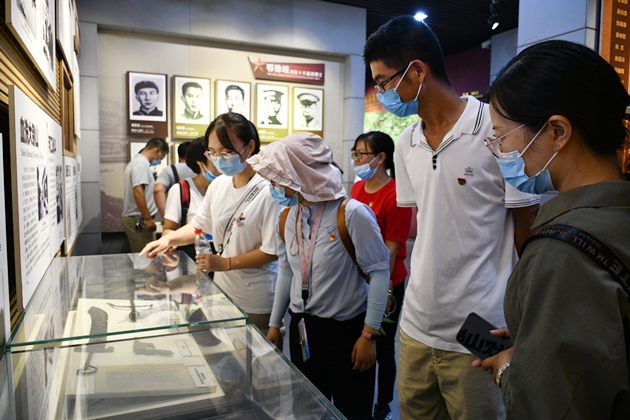 “我志愿加入中國共產(chǎn)黨,擁護黨的綱領(lǐng),遵守黨的章程……”全體黨員干部們面向鮮紅的黨旗,莊重地舉起右手,重溫入黨誓詞。一句句鏗鏘激越的錚錚誓言,銘刻著(zhù)每個(gè)人篤定終身的執著(zhù)追求。在憶初心、悟初心、踐初心的濃厚氛圍中,16名黨員和2名入黨積極分子集體過(guò)“政治生日”,現場(chǎng)接受黨性教育和精神洗禮。走過(guò)鄂豫皖蘇區首府博物館,青磚凹凸不平,木床和木桌布滿(mǎn)斑駁,破舊的薄被、陳列的手槍……一件件紅色藏品無(wú)聲地訴說(shuō)著(zhù)昔日的崢嶸歲月。祭拜許世友將軍墓,深情追憶著(zhù)許世友將軍當年艱苦奮斗的革命歷史,頑強拼搏的革命思想,清正廉潔的優(yōu)良作風(fēng)和他為革命事業(yè)奮不顧身的崇高精神。