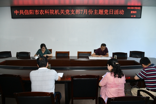 機關(guān)黨支部書(shū)記張應香同志還傳達了全市農口單位辦公室系統工作會(huì )議精神,帶領(lǐng)全體黨員共同學(xué)習了《黨政機關(guān)厲行節約反對浪費條例》,針對當前及接下來(lái)一段時(shí)間的防汛值班提出了意見(jiàn)和要求。機關(guān)黨支部組織委員趙海英同志隨后傳達了機關(guān)黨支部黨史學(xué)習教育專(zhuān)題組織生活會(huì )實(shí)施方案,強調機關(guān)黨支部要圍繞“學(xué)黨史、悟思想、辦實(shí)事、開(kāi)新局”主題,認真貫徹“學(xué)史明理、學(xué)史增信、學(xué)史崇德、學(xué)史力行”要求,于8月上中旬組織黨員召開(kāi)專(zhuān)題組織生活會(huì ),撰寫(xiě)心得體會(huì ),并對專(zhuān)題組織生活會(huì )作出相關(guān)部署要求。