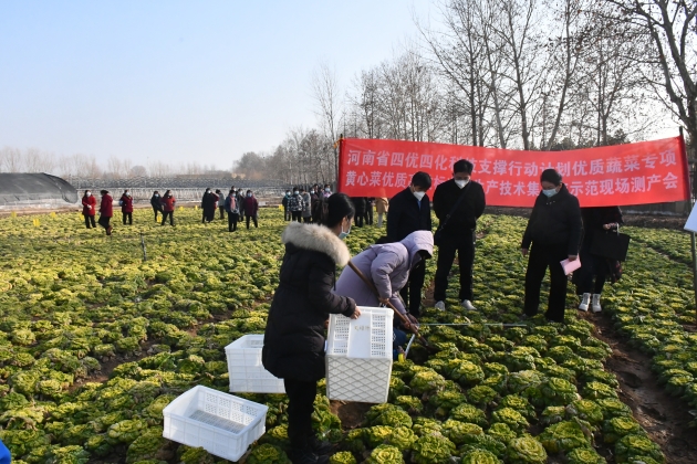 1月6日-7日,由我院主辦的河南省“四優(yōu)四化”科技支撐行動(dòng)計劃優(yōu)質(zhì)蔬菜專(zhuān)項黃心菜優(yōu)質(zhì)高效標準化生產(chǎn)技術(shù)集成與示范培訓暨示范觀(guān)摩會(huì )在信陽(yáng)召開(kāi)。中原學(xué)者、河南省“四優(yōu)四化”優(yōu)質(zhì)蔬菜專(zhuān)項負責人張曉偉研究員、露地蔬菜產(chǎn)區化肥減施提效計劃專(zhuān)題負責人王志勇副研究員、院總農藝師段斌出席會(huì )議。信陽(yáng)市農業(yè)農村局、浉河區農業(yè)農村局、平橋區農業(yè)農村局及各鄉鎮農技推廣人員、信陽(yáng)市及周邊蔬菜園區、合作社負責人、種植大戶(hù)、媒體記者等70余人參加會(huì )議。