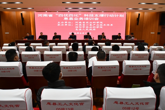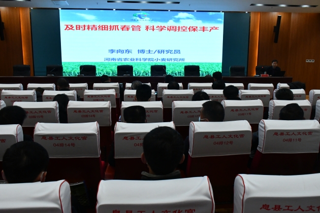 3月17日,國家小麥產(chǎn)業(yè)技術(shù)體系信陽(yáng)綜合試驗站聯(lián)合河南省“四優(yōu)四化”科技支撐行動(dòng)計劃在息縣召開(kāi)了小麥中后期田間管理技術(shù)培訓會(huì ),來(lái)自羅山、息縣、淮濱、固始、潢川等全市相關(guān)技術(shù)務(wù)骨干、種田大戶(hù)、企業(yè)代表、息縣縣政府領(lǐng)導等100余人參加了培訓。武予清研究員、李向東研究員為大家進(jìn)行了精彩授課。