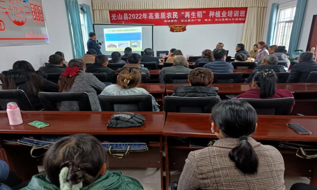 會(huì )上,劉祥臣研究員結合斛山鄉生產(chǎn)實(shí)際,從再生稻高質(zhì)量發(fā)展的重要意義及再生稻的品種選擇、播種移栽期、肥水管理、病蟲(chóng)害防治、留樁高度和再生季管理等核心技術(shù)進(jìn)行了全面詳細的講解。會(huì )后就種植戶(hù)對再生稻栽培技術(shù)提出的問(wèn)題進(jìn)行了現場(chǎng)解答,生動(dòng)形象的授課,打通了農技服務(wù)的“最后一公里”,深受參訓人員的歡迎。