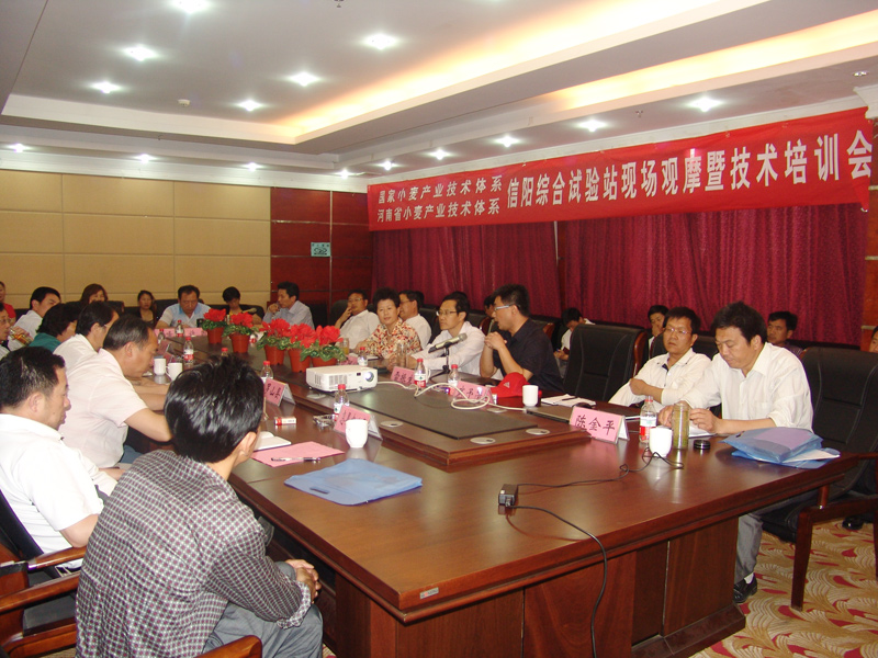 5月17日,國家、河南省小麥產(chǎn)業(yè)技術(shù)體系信陽(yáng)綜合試驗站召開(kāi)全市小麥高產(chǎn)創(chuàng )建現場(chǎng)觀(guān)摩暨技術(shù)培訓會(huì )。國家小麥產(chǎn)業(yè)技術(shù)體系首席科學(xué)家、全國小麥科技入戶(hù)工程首席專(zhuān)家、中國農科院研究員肖世和博士,河南省小麥產(chǎn)業(yè)技術(shù)體系首席科學(xué)家、河南省農科院小麥研究中心副主任雷振生博士,國家小麥產(chǎn)業(yè)技術(shù)體系土壤養分功能實(shí)驗室主任、河南省農科院植物營(yíng)養與資源環(huán)境研究所副所長(cháng)沈阿林博士,國家小麥產(chǎn)業(yè)技術(shù)研發(fā)中心病蟲(chóng)害防控研究室崗位科學(xué)家、河南省農業(yè)科學(xué)院植物保護研究所植物蟲(chóng)害研究室主任武予清博士應邀出席會(huì )議。市農科所所長(cháng)郭禎、副所長(cháng)劉祥臣,市農業(yè)局副局長(cháng)鄧仕保,息縣人民政府副縣長(cháng)董桂英,國家小麥產(chǎn)業(yè)技術(shù)體系信陽(yáng)綜合試驗站站長(cháng)陳金平研究員出席會(huì )議。息縣、羅山、潢川、固始、淮濱五個(gè)產(chǎn)業(yè)技術(shù)示范縣農業(yè)局、農科所、部分基層鄉鎮農技站、植保站有關(guān)負責同志和技術(shù)骨干、種田大戶(hù)代表參加了會(huì )議。河南省小麥產(chǎn)業(yè)技術(shù)體系信陽(yáng)綜合試驗站站長(cháng)祁玉良研究員主持會(huì )議。