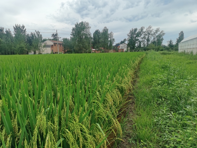 在羅山縣潘新鎮民貴家庭農場(chǎng),負責人丁明貴興奮地說(shuō),今年前期溫度高,雨水好,再生稻長(cháng)勢較往年更好一些,抽穗前有一段嚴重的干旱,好在我們積極抽水護秧保證了孕穗安全,后來(lái)關(guān)鍵的兩場(chǎng)雨及時(shí)止住了干旱。近期遭遇到連續10多天的陰雨天氣,周邊很多人反映今年水稻紋枯病重,我們是在全市再生稻微信群時(shí)接到通知,在再生稻破口前用無(wú)人機普防了一遍,現在看我們的頭茬再生稻葉青籽黃,再有兩周就可以收割了。我院科技服務(wù)團隊指出,要抓緊天氣轉晴這一有利時(shí)機,把田水放掉,趁濕(田泥濕,但葉片露水要干)施促芽肥,接著(zhù)曬田、曬硬,為機收再生稻減少輾壓作準備。