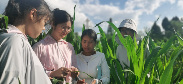 進(jìn)入七月中下旬以來(lái),信陽(yáng)經(jīng)歷多輪大范圍、高強度降雨,對農業(yè)生產(chǎn),尤其是玉米生長(cháng)造成了極為不利影響。當前信陽(yáng)春玉米正處于乳熟期至蠟熟期,是桃蛀螟等多種害蟲(chóng)及褐斑病等病害的高發(fā)期,做好此時(shí)期病蟲(chóng)害的防控是奪取秋糧豐收的關(guān)鍵。近日,我院植物保護研究所、國家植物保護信陽(yáng)觀(guān)測實(shí)驗站、河南省信陽(yáng)作物有害生物野外科學(xué)觀(guān)測研究站、河南省作物有害生物綜合防控工程技術(shù)中心科研人員一行7人分別到信陽(yáng)各縣區開(kāi)展玉米病蟲(chóng)害調查,了解和掌握玉米病蟲(chóng)害發(fā)生種類(lèi)及為害情況。