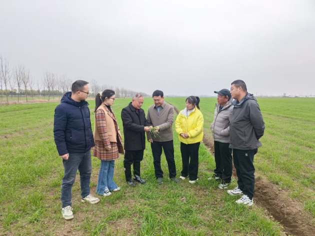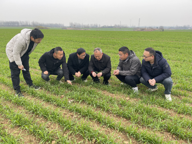 為了摸清信陽(yáng)地區小麥生長(cháng)狀況,加強小麥苗情分類(lèi)管理,促進(jìn)麥苗能夠安全越冬。12月9號至12月10號,我院小麥所所長(cháng)、河南省小麥產(chǎn)業(yè)技術(shù)體系信陽(yáng)綜合試驗站站長(cháng)石守設帶領(lǐng)試驗站團隊成員一行4人前往羅山、息縣、潢川等地與當地農技管理服務(wù)人員和種植戶(hù)一起調研小麥長(cháng)勢研判苗情,并對存在的問(wèn)題現場(chǎng)提出解決方案。經(jīng)過(guò)調研發(fā)現,主要存在部分麥田耕種質(zhì)量差,壯苗難形成,安全過(guò)冬壓力大;搶墑播種,播期偏早、播量偏大,冬前旺長(cháng)麥田等。