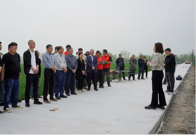 信陽(yáng)市小麥目前陸續進(jìn)入抽穗揚花期,同時(shí)也是病蟲(chóng)害易發(fā)期和影響小麥高產(chǎn)穩產(chǎn)的關(guān)鍵期。為加強小麥中后期管理、科學(xué)防控小麥病蟲(chóng)害,提單產(chǎn)、增總產(chǎn)、提品質(zhì),保障夏糧豐收,4月9日,我院河南優(yōu)勢特色農業(yè)產(chǎn)業(yè)科技支撐行動(dòng)計劃優(yōu)質(zhì)小麥專(zhuān)項在淮濱縣馬集鎮示范區召開(kāi)小麥“一噴三防”現場(chǎng)觀(guān)摩會(huì )。參加會(huì )議的有河南省農業(yè)科學(xué)院優(yōu)質(zhì)小麥專(zhuān)題負責人方保停研究員、信陽(yáng)市農業(yè)科學(xué)院小麥所副所長(cháng)周?chē)诩皥F隊成員、植保所所長(cháng)何世界及團隊成員,淮濱縣農業(yè)農村局負責同志,以及示范區周邊種糧大戶(hù)、鎮分管人員等50余人。