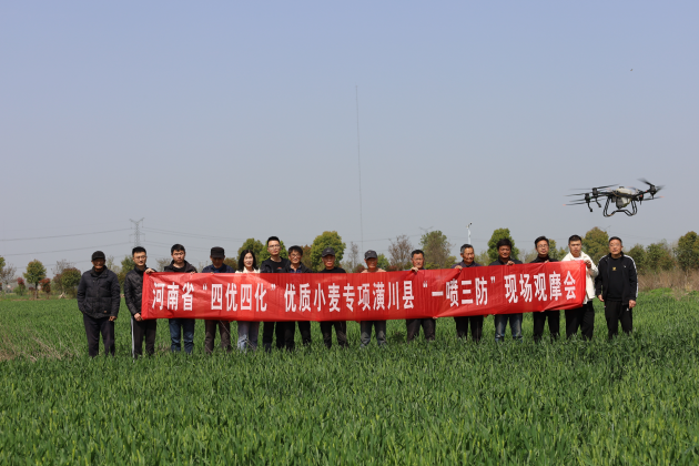 信陽(yáng)位于河南省最南部,是全國弱筋小麥生產(chǎn)核心區。當前,信陽(yáng)小麥從南向北已逐漸進(jìn)入了抽穗揚花期。為保證今年小麥生產(chǎn)安全和品質(zhì)優(yōu)良,確保夏糧豐產(chǎn)豐收。4月7日,由我院承擔的河南省“四優(yōu)四化”科技支撐行動(dòng)計劃優(yōu)質(zhì)小麥專(zhuān)項“沿淮麥區弱筋小麥抗逆保優(yōu)生產(chǎn)技術(shù)示范”“一噴三防”現場(chǎng)觀(guān)摩會(huì )在潢川縣魏崗鄉召開(kāi),有效引導農民群眾迅速開(kāi)展以小麥赤霉病防控為重點(diǎn)的“一噴三防”工作。