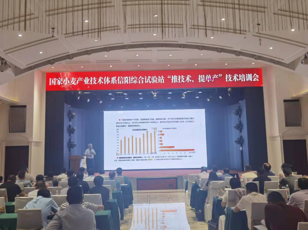 國家小麥產(chǎn)業(yè)技術(shù)體系信陽(yáng)綜合試驗站 “推技術(shù)、提單產(chǎn)”觀(guān)摩暨技術(shù)培訓會(huì )成功召開(kāi)
