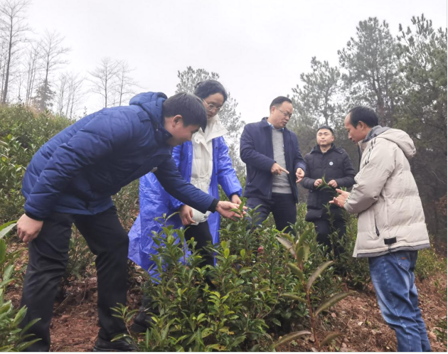 隨后,團隊一行前往新縣大地茶業(yè)有限公司茶園基地,實(shí)地調研茶樹(shù)長(cháng)勢情況,講解茶園冬季管護技術(shù),介紹冬季茶園管護的時(shí)間節點(diǎn)、管護措施等內容,為茶園順利越冬和來(lái)年春茶采收做好充分準備,為企業(yè)的更好發(fā)展保駕護航。